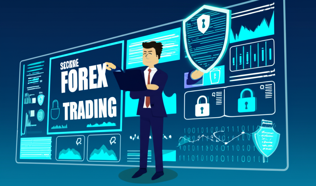 插圖:安全的外匯交易情境,象徵保護與合規操作